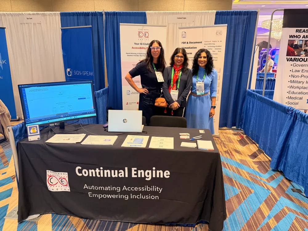 Continual Engine presented and exhibited at M-Enabling Summit 2025, a global event promoting accessible technologies and inclusive environments. Our leadership team, including Mousumi Kapoor (CEO) and Vijayshree “VJ” Vethantham (SVP, Growth & Strategy), and Kristin Yokota (AVP, Corporate Sales) actively participated in the event. We hosted a sponsored session on “Smarter PDF Remediation for a Changing Legal Landscape: PREP’s Impact on Scalable Document Accessibility”, and also led a demo-theater session. At our booth, the team engaged with attendees, offering first-hand demonstrations of PREP’s impact on compliance, efficiency, and digital equity across sectors such as government, higher education, and enterprises, while discussing the evolving role of AI in driving scalable accessibility.